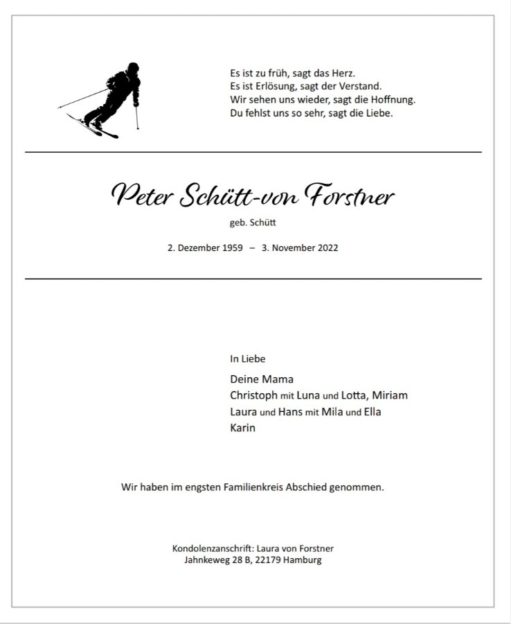 Peter Schütt-von Forstnergestorben am 3. November 2022